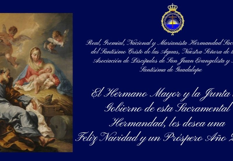La Junta de Gobierno de la Hermandad Sacramental de las Aguas, les desea una Feliz Navidad y Próspero Año Nuevo. Que la llegada del Mesías